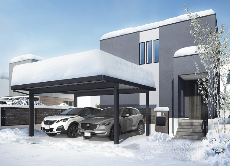 LIXILのカーポートSTは屋根への積雪荷重が長期間続くことを考慮した長期荷重設計なので、積雪量の多い北海道でも安心してお使いいただける人気の商品です。